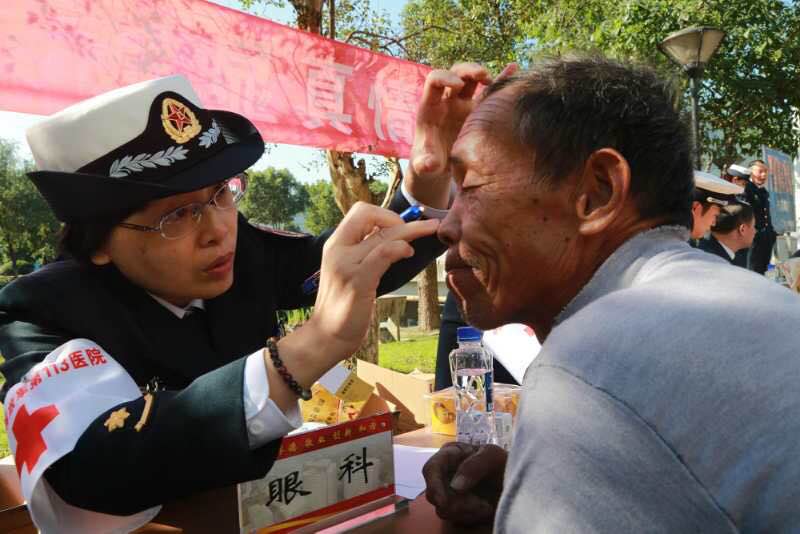 海军东海舰队定期组织专家医疗队赴横坎头村进行医疗义诊服务。图为解放军第113医院军医为村民免费义诊。韩林 摄