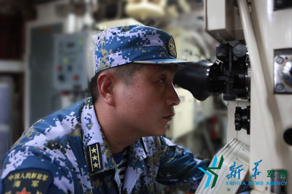 邓小春用潜望镜观察海面情况。吴奔 摄