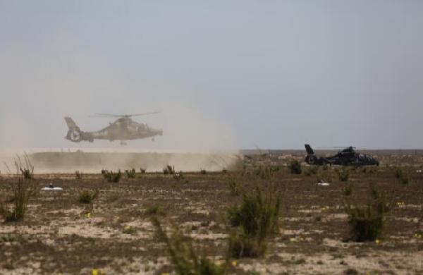 4月18日,根据年度例行性计划安排,我陆军航空兵部队在东南沿海举行跨昼夜海上实弹射击演练,多型武装直升机密切配合,高效协同,全面检验陆航部队海上全天候作战能力。新华社发(李士龙 摄)