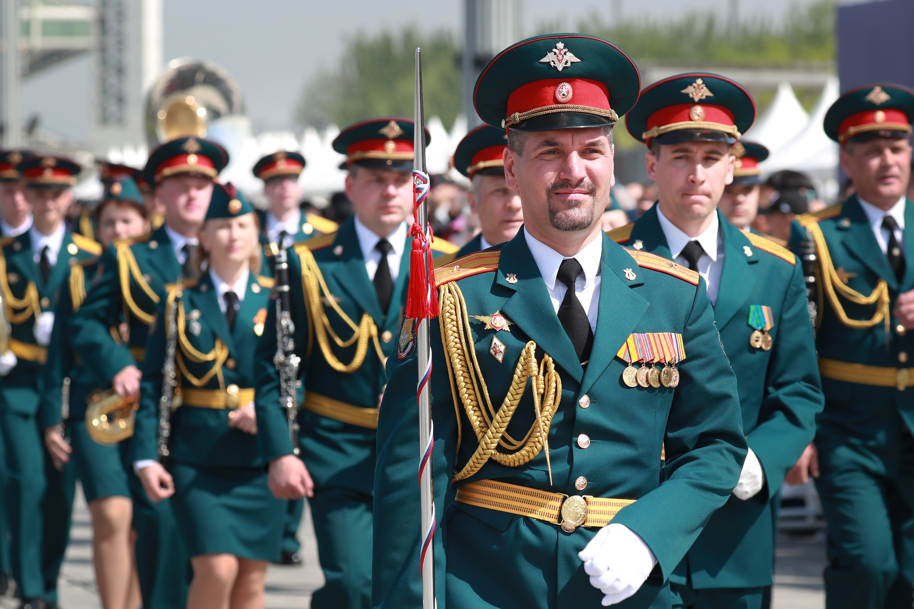 4月25日,“和平号角-2018”上海合作组织第五届军乐节在北京奥林匹克公园举行军乐巡游表演。吉尔吉斯斯坦、巴基斯坦、俄罗斯、塔吉克斯坦、乌兹别克斯坦、印度、白俄罗斯与中国人民解放军军乐团、海军军乐团、空军军乐团、武警部队军乐团共11支军乐团参加了巡游表演。