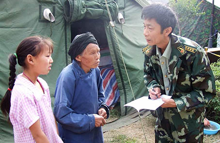 我立即与武警四川总队及武警驻川某师、水电、森林、交通、黄金等部队取得联系,从地震发生到13日凌晨四五点钟,我先后向总社传回十几条武警出动部队奔赴灾区一线抗震救灾的消息。