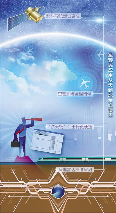 为高铁保驾护航、“航天管”铺设海底解决世界难题、雷达探测城市地下管网、“航天纸”让人们便捷出行……近年来,我国大力推动军工技术向民用领域转化,为国民经济发展注入新活力。