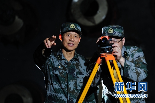 中国工程院院士、军事科学院国防工程研究院研究员任辉启(左)开展量测工作(资料照片)。新华社发(侯艺兵 摄)