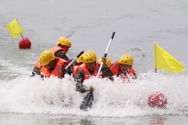 这是浙江省军区首届全省民兵大比武,参加的民兵人数之多、对象范围之广前所未有。工程机械操作、橡皮艇使用、医疗救护等军地通用项目是这次比武的热门。这些技能除了用以支援保障作战,在平时遂行抢险救灾任务中也有重要作用。橡皮艇使用需要在规定时间内完成操舟机水下安装、浮标绕行、后退驾驶、徒手打捞等系列动作,完成度高、用时短的队伍获胜。