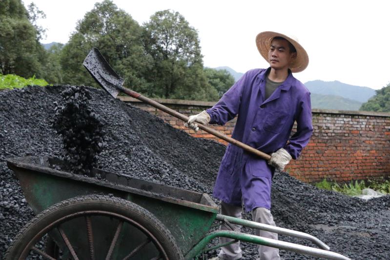 朱高平在铲煤 欧翔 摄
