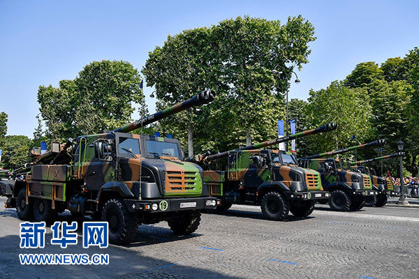 7月14日,在法国巴黎举行的国庆阅兵仪式上,受阅部队驶过香榭丽舍大街。新华社记者 陈益宸 摄