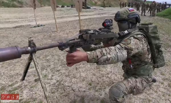 近日,在俄罗斯国民近卫军发布的最新战术射击训练视频中,可见一种新型背包式机枪弹药箱。这种弹药背包可内装大量弹药,约500发机枪弹,能为俄军PKM机枪手提供持续性火力,利于在作战中快速压制敌军。图为配备背包式弹箱的俄军PKM机枪手,还加装了消声器。
