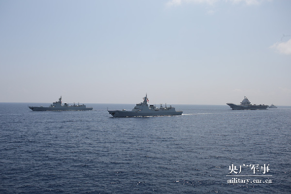 2018年4月4日,南海海上阅兵任务准备期间,海口舰接受检阅。于林摄