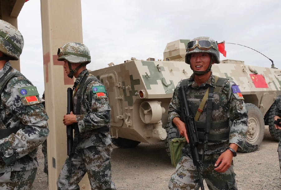 7月31日拍摄的参加比赛的中国军人。新华社记者 李刚 摄