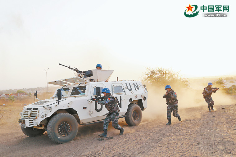 中国第4批赴南苏丹维和步兵营官兵举行应急演练。王岸鸿 摄