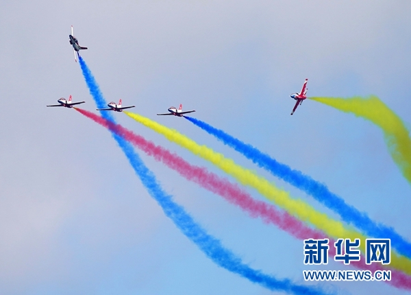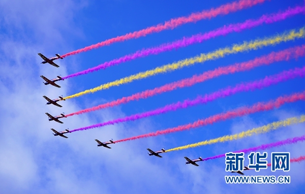 8月30日,“天之翼”飞行表演队在空军航空开放活动上进行飞行表演。 新华社记者 王东明 摄