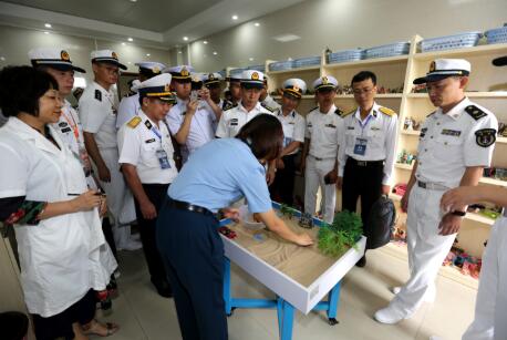 在学术厅,各国代表们围绕海上伤员的救治与后送展开讨论交流,越南、新加坡、泰国、文莱军医代表分别作交流发言。