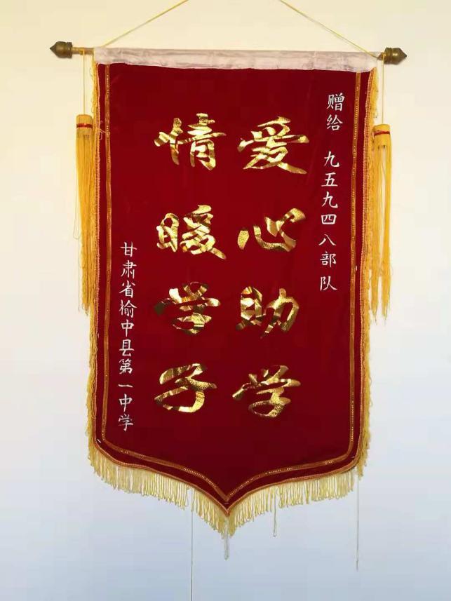图为榆中一中赠送部队的锦旗。彭晋东 摄
