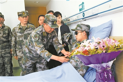 “是,首长!”杜富国声音洪亮。病床上的他,挺直了腰板,抬起了缺残的右臂,敬上一个特殊的军礼,热烈的掌声在病房里久久回荡。(周贤军、欧阳治民)