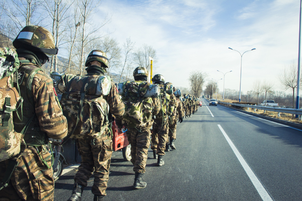 特战队员人均负重30斤,进行长途拉练耐力训练。强健 摄