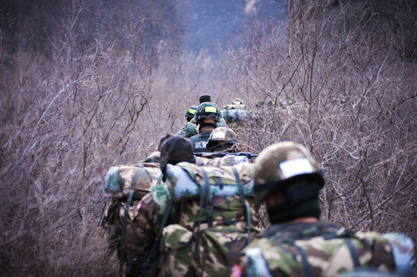 负重穿过丛林,翻越大山,进行超负荷体能训练。强健 摄