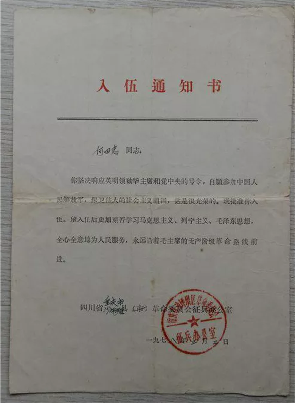 何田忠参军后于1978年底