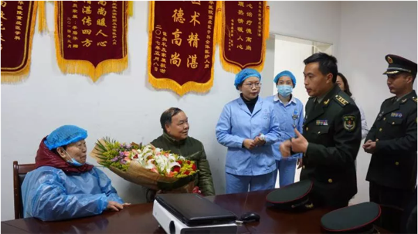 何良英病重入院,陆军军医大学研究生院和附属新桥医院领导与田伯芬一同商议最佳治疗方案。蒋德红 摄