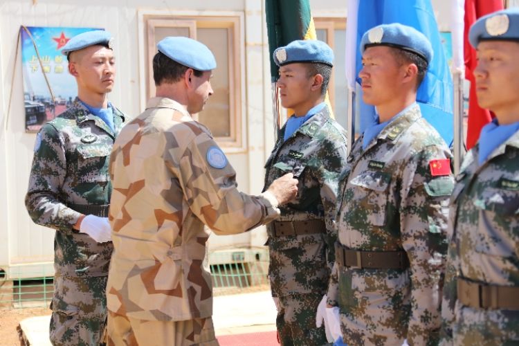 联马团司令丹尼斯·吉伦斯伯尔中将为维和官兵授予勋章。贾春明 摄