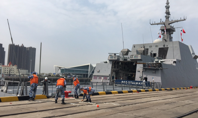 参加人民海军成立70周年多国海军活动的首艘外国舰艇抵达青岛