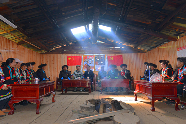 边防官兵为珞巴族群众宣讲脱贫政策。张迅 摄