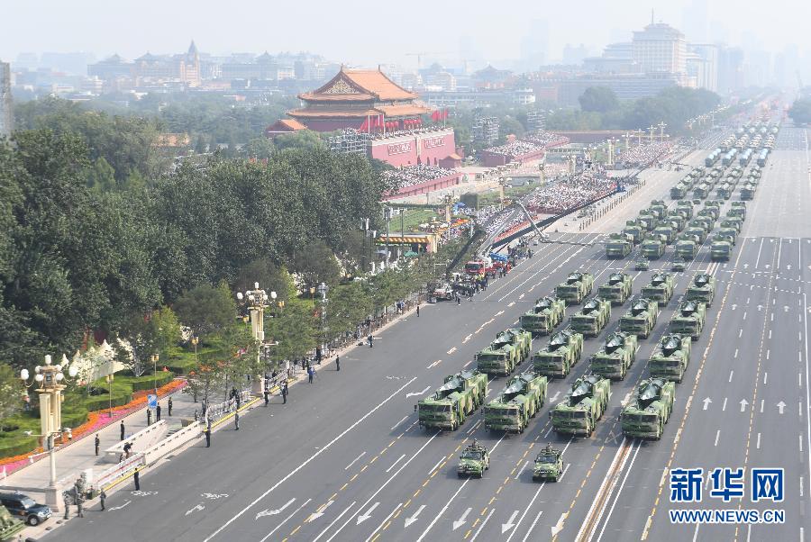 10月1日上午,庆祝中华人民共和国成立70周年大会在北京天安门广场隆重举行。这是装备方队通过天安门广场。新华社记者 普布扎西 摄