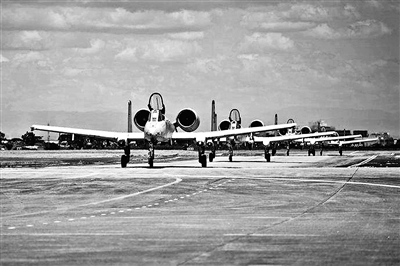 停在菲律宾克拉克空军基地的美国空军攻击机。资料图片