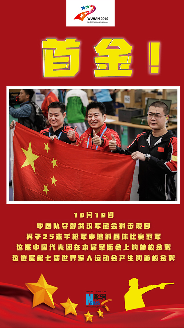 新华社武汉10月19日电 题:打响第一枪 射中第一金——中国队勇夺第七届世界军人运动会首金侧记