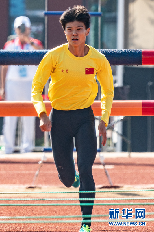 10月20日,中国队选手卢嫔嫔在比赛中。 当日,在武汉举行的第七届世界军人运动会军事五项女子个人全能障碍跑项目中,中国队选手卢嫔嫔以2分10秒09的成绩打破该项目世界纪录,排名第一。 新华社记者刘金海摄