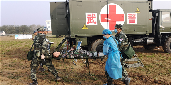 新华社西安10月21日电(刘新、帅刚社)武警某部近日组织卫勤保障分队, 远程机动至千里之外的陌生地域,开展为期7天的全员全装全要素跨区基地化驻训演练, 磨砺战场卫勤保障尖兵。