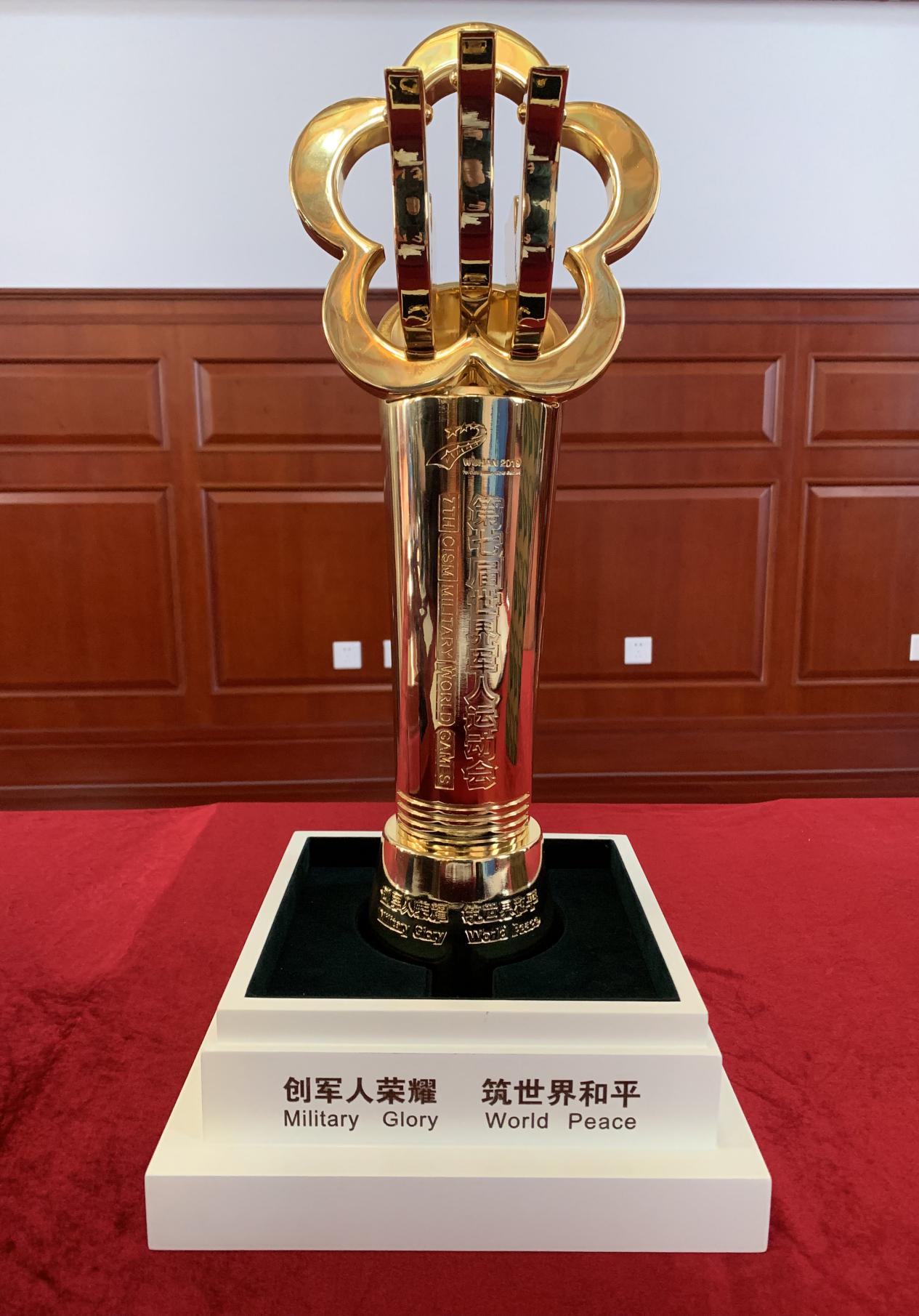 捐赠的第七届军运会奖杯。赵婉姝 摄