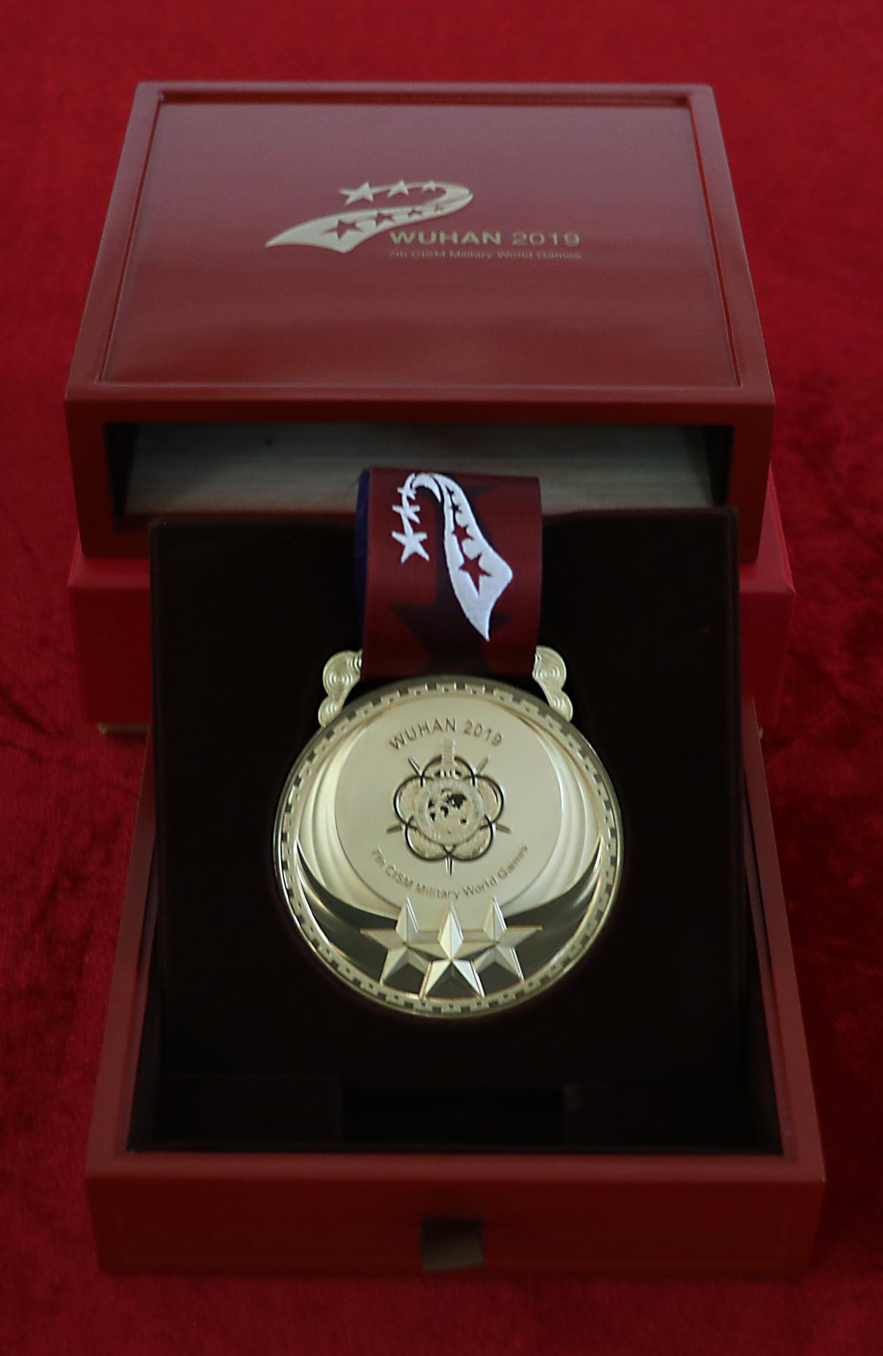 捐赠的第七届军运会金牌。赵婉姝 摄