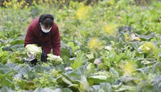 保安为进入院区车辆轮胎喷洒消毒液。张文艺 摄