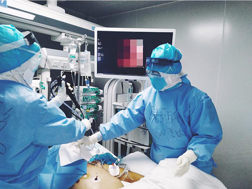 接了这样高危的活儿,唐丽娜不仅离“毒洞”直线距离最近,接触时间也最长。她要用手固定气管插管保持直立,还要防止导管插入刻度改变。这一握就是20多分钟,她能明显感受到管子里的气体流动。