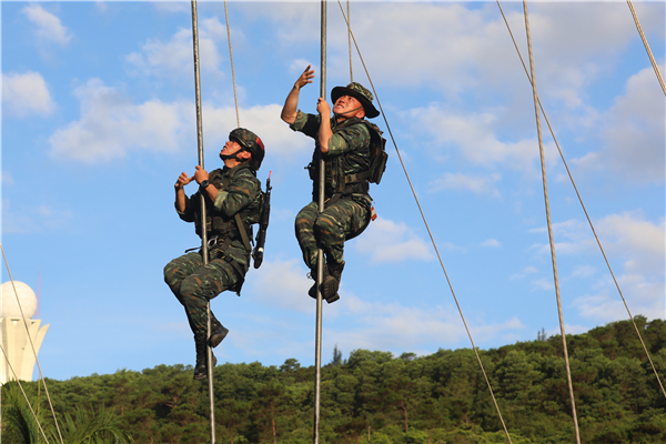 特战队员进行攀爬训练