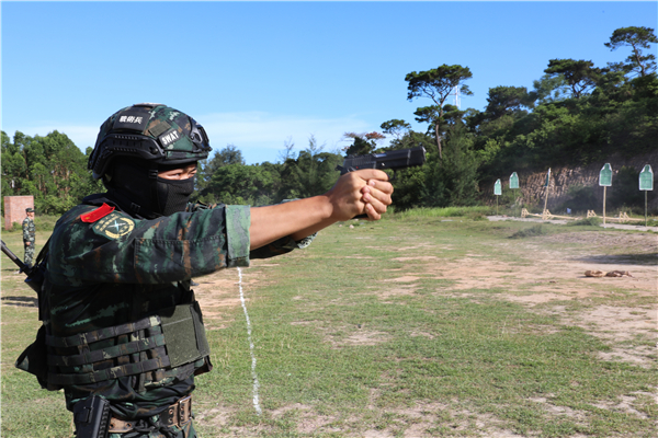 近日,武警广西总队钦州支队结合夏季练兵特点,组织特战队员开展战术搜索、奔袭运动射击、蒙目武器分解结合以及极限体能等课目训练,全面提升特战队员在高温环境和复杂条件下的实战能力。(柴浩摄影报道)