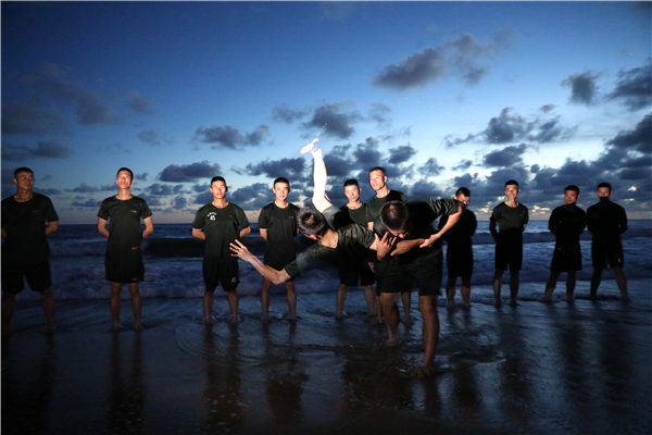 特战队员在海滩进行摔擒训练