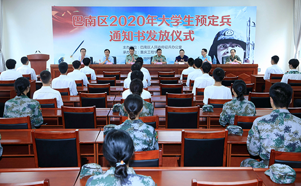 重庆市巴南区2020年《大学生预定兵通知书》发放仪式现场。