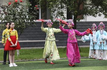 仲月霞(前排中)给学员现场讲解传染病房的通道管理(7月31日摄)。新华社发(梁嘉赫 摄)
