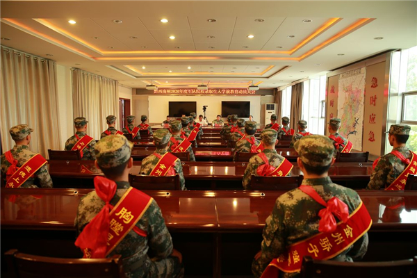 2020年,贵州省黔西南州30名高考生被军队院校录取。兴义军分区、黔西南州教育局、兴义市人武部联合地方多个部门组织军校录取新生开展入学前国防教育,让他们提前体验军营生活,坚定从军志向。