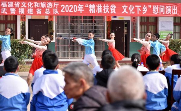 为学习贯彻党的十九届五中全会精神,推动农村文化建设发展,近日,武警福建总队“文艺轻骑队”联合省市文旅部门歌舞团到宁德市寿宁县上党村和龙岩市长汀县晨光村开展“精准扶贫、文化下乡”专项慰问演出,给村民们带去了欢声笑语,丰富了村民们的文化生活。