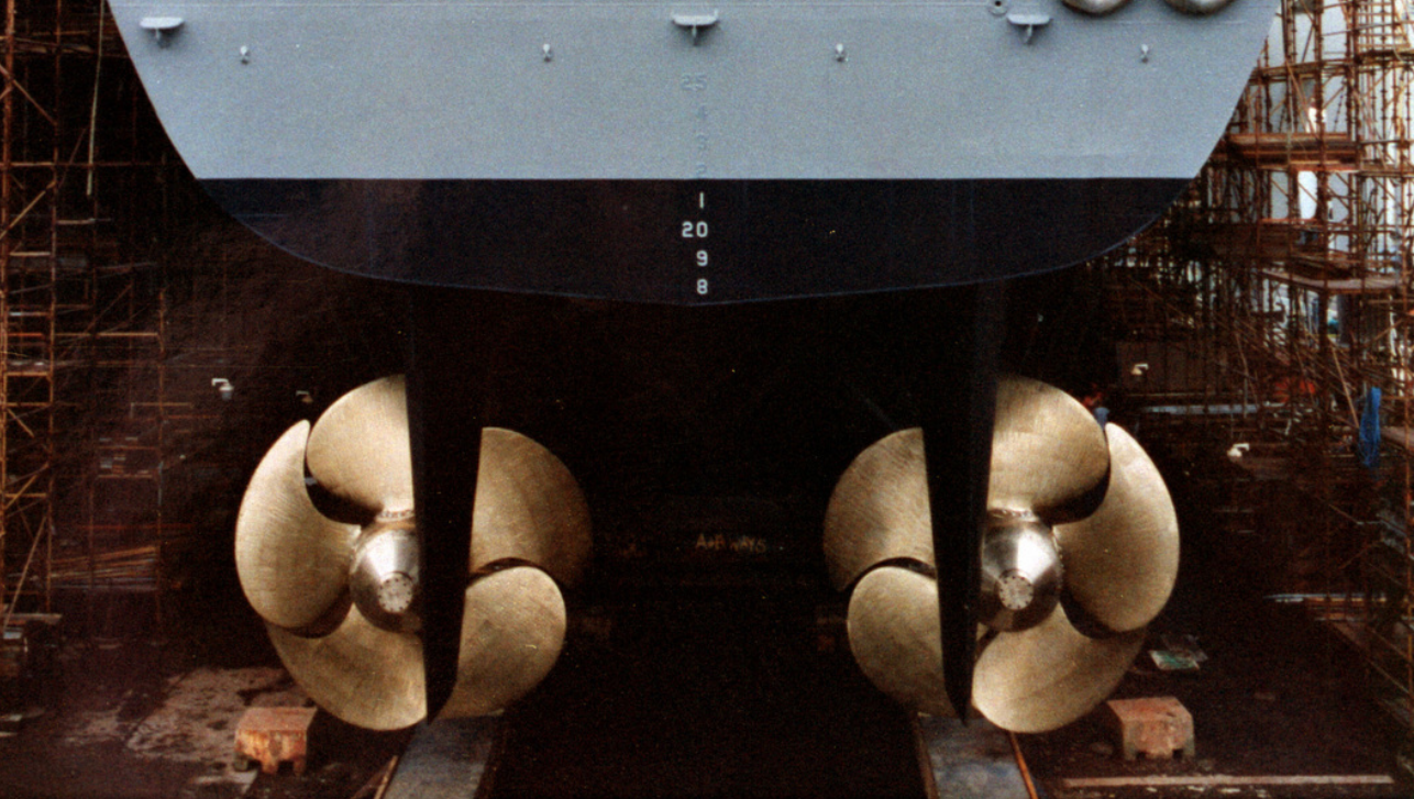 军舰螺旋桨大多采用铜合金制成,抗腐蚀性强,造价也相当高昂。