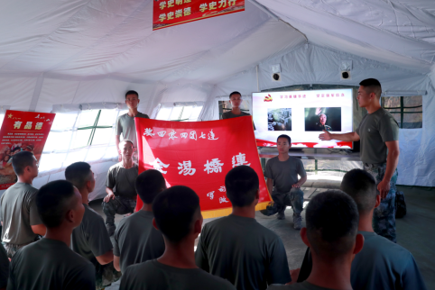 7月1日,正在塞北草原开展实战化练兵的第81集团军某旅官兵通过电视直播收看了庆祝中国共产党成立100周年大会盛况。随后,该旅表彰优秀基层党组织、优秀党务工作者、优秀共产党员,组织党员宣誓,引导官兵铭记责任、矢志强军、牢记使命。(张楠、薛伟摄影报道)