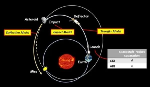 老刘查阅公开报道和相关资料后发现,中科院官网7月初发布了一篇题为“空间中心提出应对潜在威胁小行星的‘末级击石’防御方案”的文章。文章称,针对传统动能撞击(CKI)在短期预警时间条件下无法有效防御直径140米级危地小行星的问题,中国科学院复杂航天系统电子信息技术重点实验室多位专家、中国空间技术研究院北京卫星环境工程研究所专家、中国运载火箭技术研究院北京宇航系统工程研究所专家合作,设计出航天器火箭末级组合动能撞击方案(AKI,简称“末级击石”)。参考长征五号运载火箭的技术参数,假设火箭末级重量为6.5吨,以偏转直径约492米的“贝努”小行星轨道为例,研究人员开展了数值仿真。结果表明,相比于传统动能撞击方案,利用单发长征五号发射“末级击石”任务的偏转效果可等效于三发长征五号发射传统动能撞击任务的偏转效果。同时,对于十年内偏转直径140米的小行星轨道,偏转距离可由不足一倍地球半径提升至一倍地球半径以上,为十年预警时间条件下偏转直径140米级危地小行星提供了一种潜在的高效技术手段。