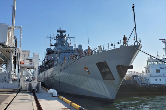 日本海上自卫队11月5日心急火燎地在社交媒体上发布照片并宣布,德国“勃兰登堡”级护卫舰“巴伐利亚”号20年来首次停靠日本港口。