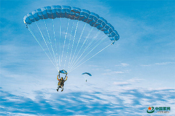 “紧盯目标、注意顶风、调整伞具……”准确降落到目标点位后,仁青才仁将训练中的注意要点及时向队员们作了提示。随着跳伞命令下达,队员们迅速起立,弯腰、屈腿、抱紧备份伞,依次从天而降……很快,海天之间绽放出朵朵伞花。(卢红波、张智、金天摄影报道)