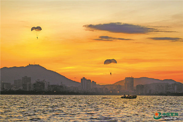 原标题:伞花绽放海天间——海军陆战队“蛟龙突击队”海上伞降训练影像