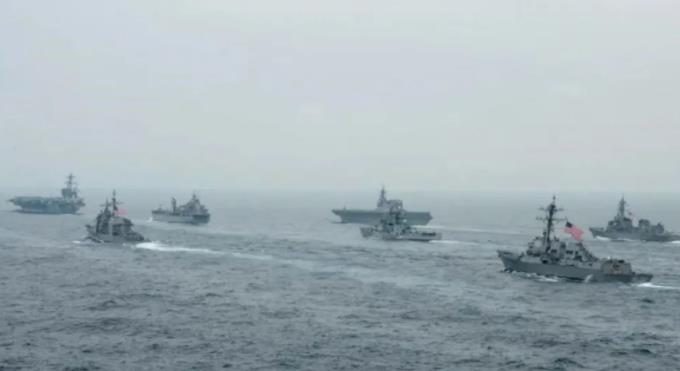 参加“马拉巴尔2021”联合演习的多国舰艇