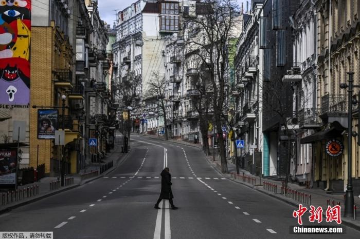 当地时间2月27日,乌克兰首都基辅街头,马路空空荡荡,难寻行人身影。