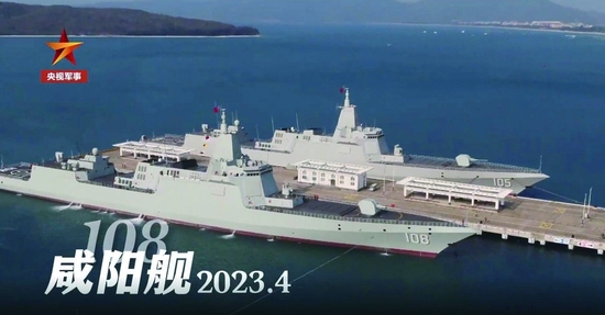在此之前,中国海军第8艘055型万吨大驱咸阳舰于4月21日正式亮相。在南部战区,海军某军港内,咸阳舰、大连舰、延安舰三艘055型驱逐舰同框。2020年055型驱逐舰首舰南昌舰正式入列,3年来“万吨大驱”家族不断壮大,人民海军已迎来8艘“万吨大驱”,分别是101南昌舰、102拉萨舰、103鞍山舰、104无锡舰、105大连舰、106延安舰、107遵义舰、108咸阳舰。